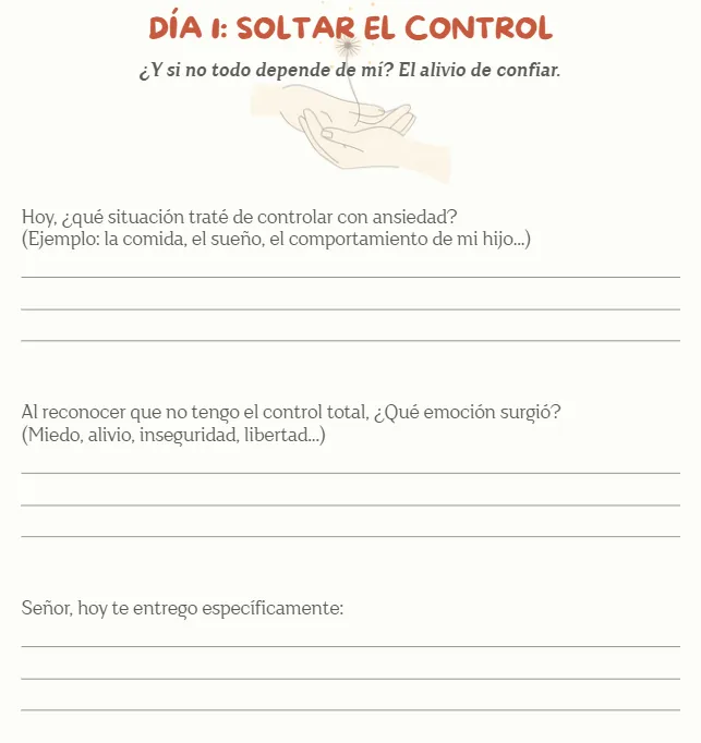 Al descargar recibirás la guía "Encuentra a Dios en el Caos de la Maternidad", la cual te ayudara durante 7 días con guías prácticas, reflexiones, oraciones cortas y una acción simple para aplicar en tu día.